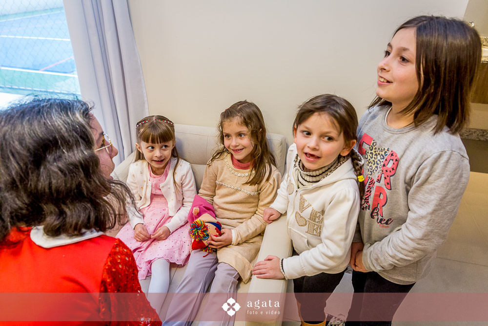 Quando somos pequenos queremos crescer! Não vemos a hora de sermos grandes, de podermos decidir sobre o que fazer e quando fazer. Mas quando grandes, lembramos com saudades da ingenuidade de criança e sentimos falta. Chegamos até a nos questionar: da para voltar? Ahhh… Crescer faz parte da vida e como é bom crescer rodeada de amigos e família. Como é bom correr, brincar, cansar e depois voltar para o beijo e a segurança da mamãe e do papai. Com certeza a Giovana vai guardar lindas recordações desse momento e quem sabe, assim como nós ter vontade de revive-los.